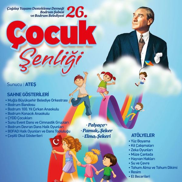 ÇYDD ve Bodrum Belediyesi’nin organizasyonu ile 26.‘sı gerçekleştirilen Çocuk Şenliği’nde BodrumArt Sanatçıları olarak Sanat atölyeleri gerçekleştirdik.